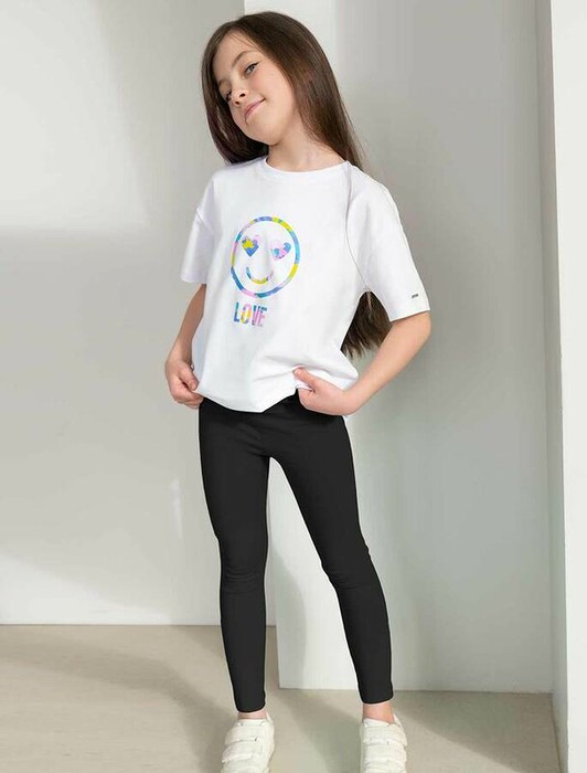 Трикотажные леггинсы для девочки изготовлены из премиальной кулирной глади. Удобный широкий пояс с мягкой резинкой. Не сползают, хорошо облегают фигуру и не давят на живот. Дышат и сохраняют тепло. Подходят для лета и поздней весны, школы, детского сада и для дома. Позволяют создать casual образ на каждый день в комплекте с худи, джинсовой курткой или удлиненной футболкой.