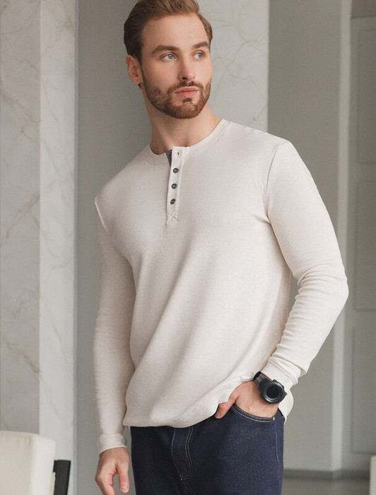 Заказать Vilatte Лонгслив из премиального хлопка с эластаном U49.054 бежевый меланж
