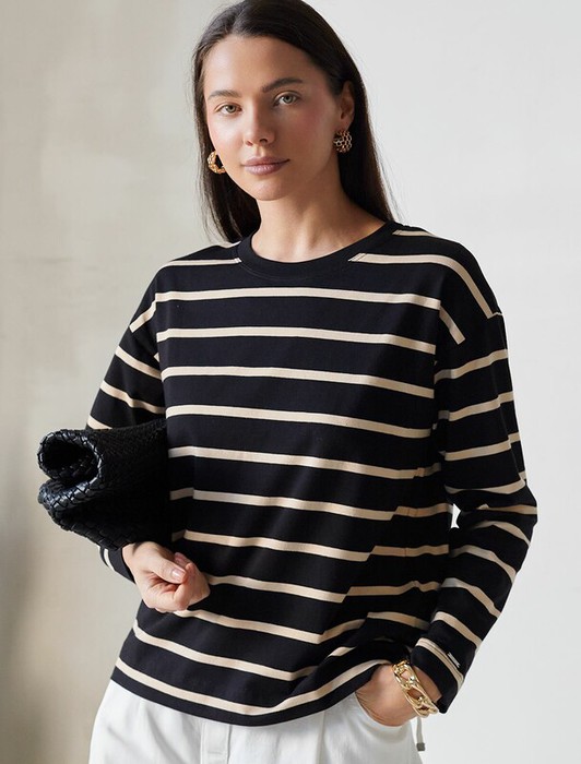 27.03 Vilatte Лонгслив с принтом из премиального хлопка с эластаном D49.148 чер