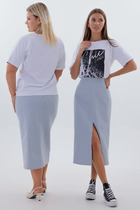Мини-юбка выполнена из денима с покрытием под кожу. Мягкий и эластичный материал с внутренней тканевой поверхностью обеспечит исключительный комфорт, как вторая кожа.  Совет стилиста: прямая мини-юбка хороша в тандеме с любым объемным верхом; рубашка, свитшот или вязаный джемпер. В классическом сочетании – водолазка или свитер мелкой вязки.