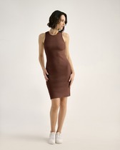 Платье прямого силуэта фактурной вязки выполнено из хлопка с добавлением кашемира.