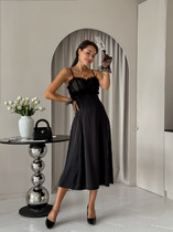 Элегантное платье прямого кроя черного цвета выполнено из воздушной сетчатой ткани с прозрачными рукавами, придающими образу лёгкую игривость. Мягкая вискозная подкладка обеспечивает комфорт, сохраняя при этом эффект полупрозрачности. Универсальный черный цвет делает платье идеальным для базового гардероба.