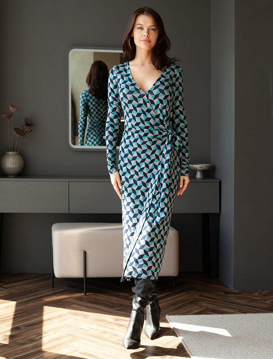 Заказать Vilatte Платье на запАх из трикотажной вискозы с эластаном D42.226 сине-зеленый
