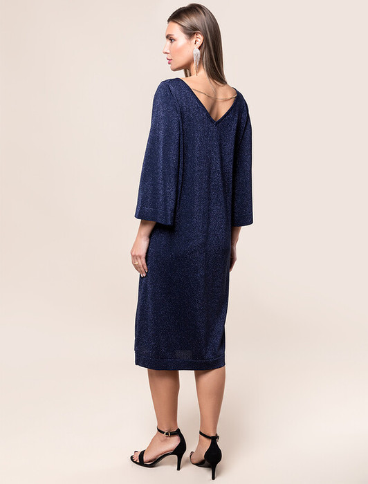 Vilatte Платье вязаное из вискозы с мягким люрексом D32.099 темно-синий