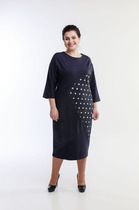 27.03 Vilatte Платье жаккардовой вязки с кашемиром D32.111 синий-бежевый