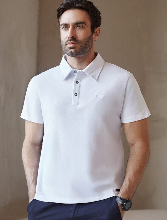 Поло выполнили из хлопкового пике, которое обеспечивает комфорт даже в жаркое время года и почти не мнется. Планка воротника внутри контрастного цвета застегивается на пуговицы в матовом серебре с логотипом бренда, превращая обычную спортивную модель в элемент делового стиля. Преимуществом поло от VILATTE является добавление эластана в классический для поло материал пике. Это гарантирует безупречный комфорт и долговечность.Поло сочетается в паре со светлым денимом и чиносами, в офис с черными брюками.