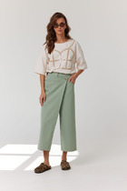 Брюки прясого кроя выполнены из супер-плотной эластичной поливискозы. Модель ткань идеально подойдет для повседневных образов и впишется в офисный дресс код. Изделие с высокой посадкой визуально стройнит и вытягивает силуэт, удлиняет ноги.  Свободный силуэт подходит для любой фигуры.