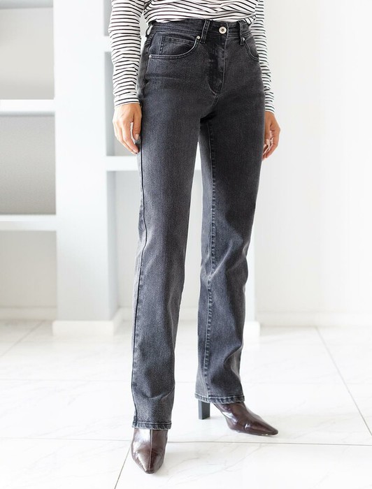 Прямые джинсы выполнены из эластичного денима. Удлиненная модель универсального черного цвета легко впишется в любой, даже строгий офисный образ с жакетом и блузкой. Комфортная посадка на талии подходит для любой фигуры, ткань хорошо тянется и не сковывает движений. На поясе сзади расположен нашивка из эко-кожи с логотипом бренда. Длина изделия позволяет выбрать к образу обувь на каблуке