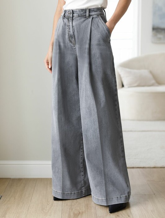 Заказать 22.03 Vilatte Широкие джинсы с защипами из эластичного денима D54.307 серый