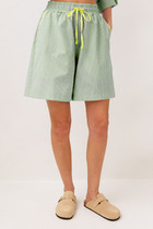 Шорты выполнены из эластичного футера. В области боковых швов низ шорт оформлен фигурной скругленной линией. В боковых швах расположены карманы. Внутренняя часть кармана из тонкого хлопка в тон полотна. Модель дополнена эластичным поясом, с контрастной полосой и золотистым логотипом бренда. Сочетается в костюме с джемпером D49.083 и D49.086. Правила ухода: использовать жидкое моющее средство (гель для стирки), добавлять к нему кислородный пятновыводитель для цветных вещей, и салфетки (защита от окрашивания). Стирка при 30 градусах, отжим на максимальных оборотах.