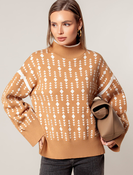 Совместные покупки Сургут Женская одежда Джемперы, свитеры, водолазки — 22.03 Vilatte Свитер с боковыми разрезами жаккардовой вязки с кашемиром D34.207