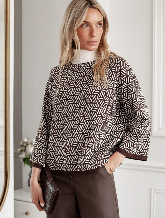 — 27.03 Vilatte Свитер жаккардовой вязки с кашемиром D34.208 кофейный