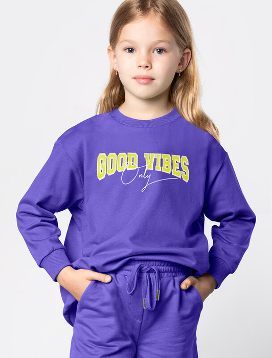Совместные покупки Сургут Детская одежда Джемперы, свитеры — 24.03 Vilatte Свитшот из премиального футера с принтом F49.406 лаванда