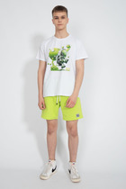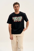 Футболка свободного кроя выполнена из премиального хлопка. Авторский принт нанесен красками с устойчивым покрытием. Благодаря эластану, носить изделие очень комфортно, и оно сохранит свой безупречный вид в течение долгого времени. На рукаве нашивка из эко-кожи с логотипом бренда.