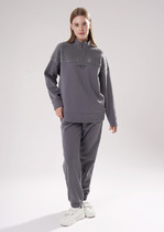 Брюки свободного кроя с контрастными лампасами выполнены из эластичного футера двухнитки. Модель дополнена боковыми карманами. Пояс на резинке фиксируется внутренним хлопковым шнуром. Диагональные визуально стройнят силуэт, а образ становится динамичным. Сочетайте изделие в костюме с паркой D49.076  и свитшотом D49.073