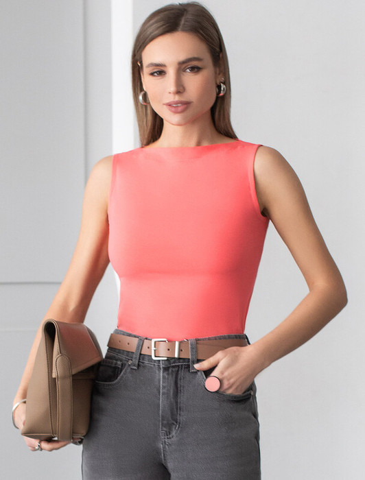 Совместные покупки Сургут Женская одежда Майки, топы — Vilatte Топ из премиального хлопка с эластаном D43.201 розовый коралл