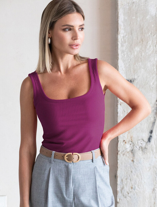 Совместные покупки Сургут Женская одежда Майки, топы — Vilatte Топ из трикотажа в широкий рубчик D43.224 пурпурный