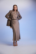 Юбка с разрезом выполнена из плотного лиоцелла. Модель, скроенная по косой мягко, струится по телу и отлично драпируется. Удобный пояс на эластичной резинке. В теплое время года ткань приятно охлаждает кожу. Добавление синтетических волокон в составе изделия, предотвращает сминаемостьи поддерживает формоустойчивость. Юбка сочетается в костюме с топом D23.063, блузкой D29.266, D29.267 и жилетом D27.002