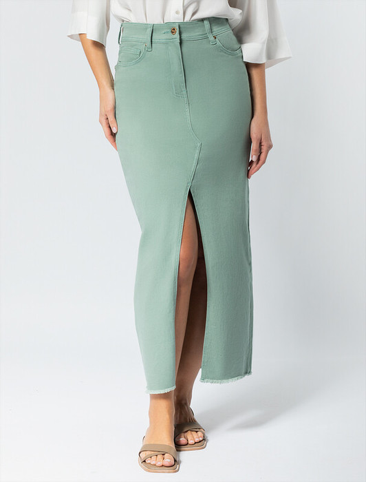 Vilatte Юбка из супер-эластичного денима с необработанным краем D56.040 оливка