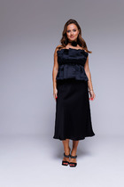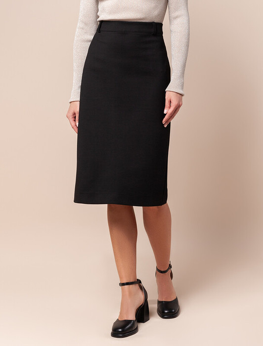Юбка-карандаш выполнена из плотного джерси. Высокая посадка на талии. Сзади застежка на потайную молнию и шлица. Эластичный джерси почти не мнется, хорошо сохраняет форму и не оставляет заломов. Классический вариант для офиса или делового мероприятия.