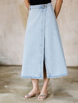 — Vilatte Юбка на запАх из эластичного денима D56.112 светло-голубой