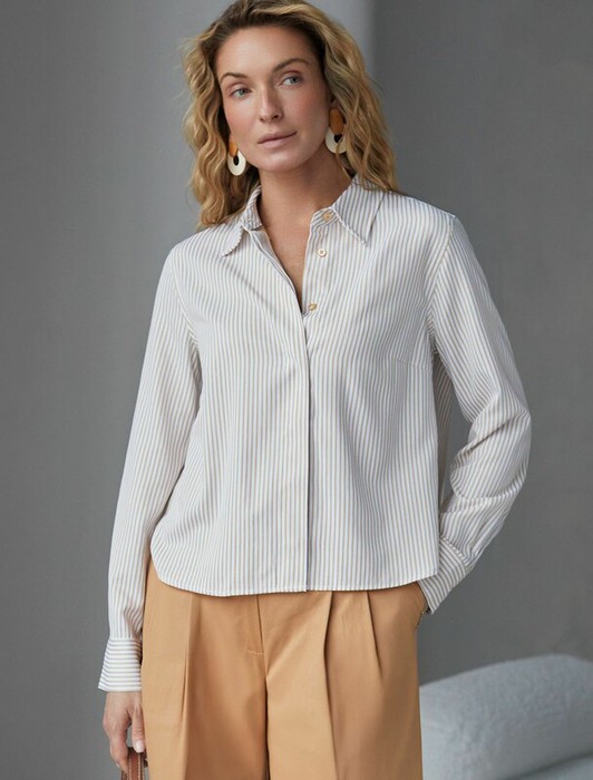 Vilatte Укороченная блузка из эластичного хлопка D29.322 белый-бежевый