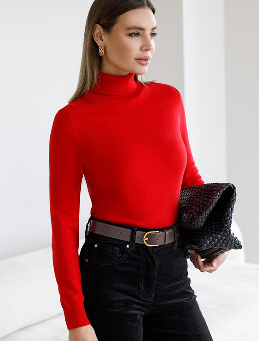 Совместные покупки Сургут Женская одежда Джемперы, свитеры, водолазки — Vilatte Водолазка тонкой вязки из хлопка с нейлоном D34.122 красный