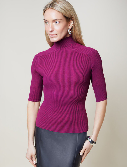 27.03 Vilatte Водолазка тонкой вязки в рубчик из хлопка с нейлоном D34.198 пурп