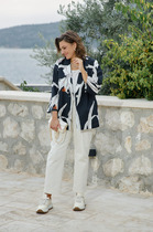 Жакет жаккардовой вязки выполнен из нежной пряжи на основе вискозы с добавлением кашемира. Модель с круглым вырезом и золотистой фурнитурой выглядит дорого и роскошно, приятно ощущается на теле и поддерживает комфортный микроклимат. Совет стилиста: сочетайте с однотонными брюками, юбкой, платьем или джинсами. Можно использовать в комплекте total-look с D39.362 и с платьем D32.110