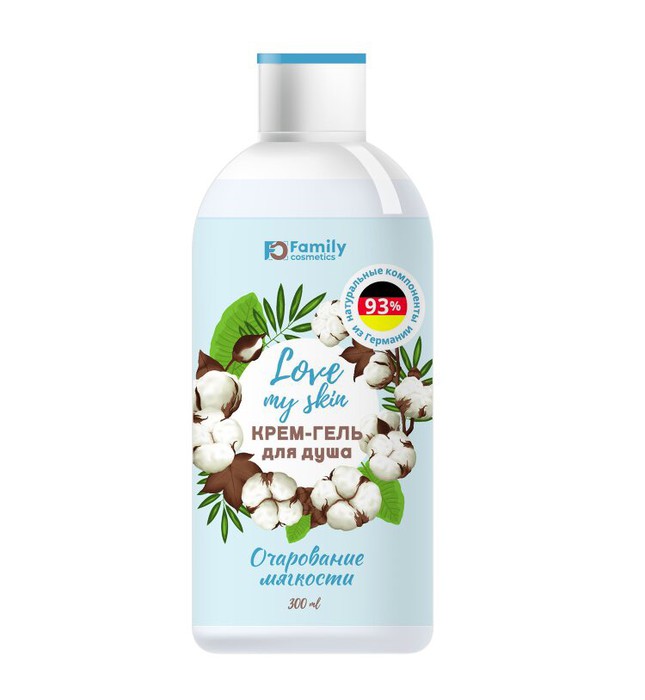 КРЕМ-ГЕЛЬ ДЛЯ ДУША «ОЧАРОВАНИЕ МЯГКОСТИ» СЕРИИ LOVE MY · Пантенол · Масло Хлопка · Масло Авокадо