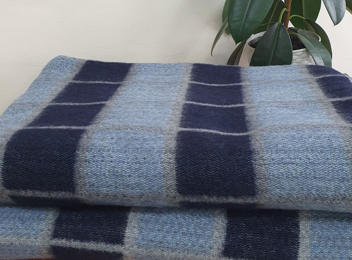 ВЛАДЛЕН Одеяло полушерстяное (50% Шерсть) Клетка Серо-Синяя-с Голубым