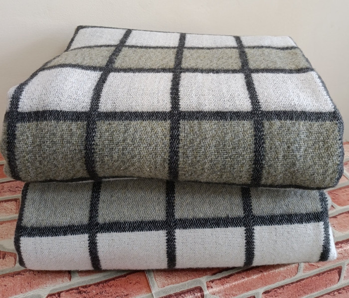 ВЛАДЛЕН Одеяло полушерстяное (50% Шерсть) Клетка Серо-Зелёная Микс