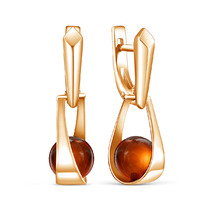 Серьги из золочёного серебра с натуральным янтарём 925 пробы 2-404з640