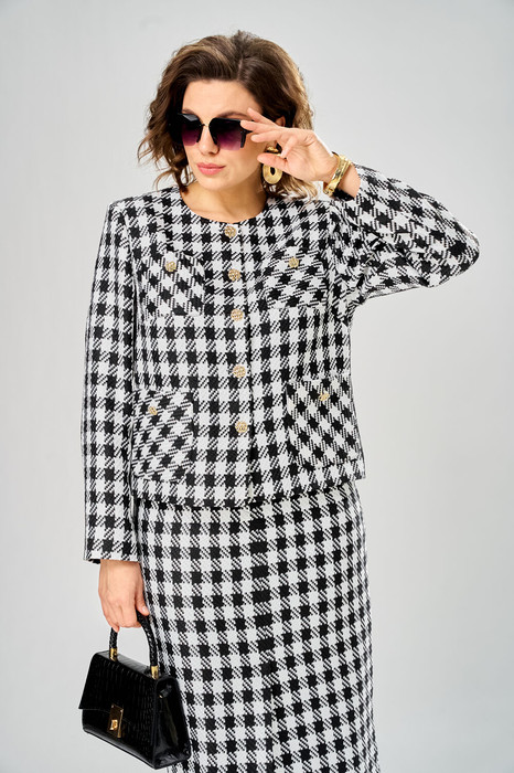 Прекрасный, стильный женский жакет в стиле Шанель не оставит равнодушной ни одну модницу! Полуприлегающий классический покрой подчеркнет достоинства фигуры, он идеально подойдет для создания разнообразных нарядов на каждый день благодаря универсальности и стильному дизайну. Жакет с застёжкой спереди на петли и пуговицы, с круглой формой горловины и втачными двухшовными рукавами. По переду выполнены боковые и нагрудные накладные карманы, спинка со швом посередине и вытачками. Жакет на подкладке.