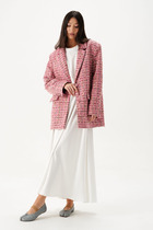 Джемпер свободного прямого кроя, выполнен из мягкой пушистой ткани серого цвета с пайетками. Характеристики: прямой крой, горловина овальная, рукав спущен, брендированная подкладка. Длина по спинке 51см, длина рукава от края горловины 71см.