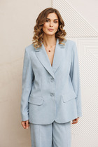 Джемпер прямого кроя выполнен из мягкого трикотажного полотна. Характеристика: прямой крой, овальная горловина, застежка центральная на петли - акцентные пуговицы. Рукав втачной, спущен. Спинка цельнокраеная. Длина по спинке 47см, длина рукава от края горловины 76см.