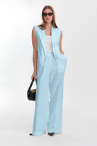 Жакет прямого свободного кроя, выполнен из ворсистой ткани серого цвета. Характеристики: горловина стойка, застежка центральнаяна петли пуговицы,рукав прямой, по плечевому шву пата на пуговице, на левом рукаве нашивка Annete. Длина по спинке 46 см, длина рукава 62 см.