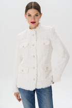 Жакет прямого кроя. Выполнен из трикотажного полотна. Есть подкладка. Воротник рубашечного типа. Рукав втачной, спущенный, с манжетой. Застёжка центральная потайная молния. По переду накладные карманы с клапаном. Шлёвки, пояс из ткани основного изделия. Длина рукава от линии втачивания 60 см. Длина спинки 72 см