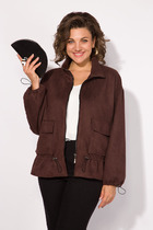 Жакет прилегающего силуэта. Выполнен из костюмной ткани с фактурной вышивкой. С подкладкой. Круглый вырез горловины. Рукав втачной, короткий. Спинка с поясом, выходящим из боковых швов. Застёжка центральная - пуговицы. Длина спинки 72 см. Длина рукава от линии втачивания 22 смЖакет дополнит юбка А1621