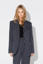 Жакет прямого кроя, выполнен из костюмной ткани черного цвета. Характеристика: двойной объемный воротник "шаль", застежка центральная на петлю - пуговицу, выточки, на подкладке, рукав втачной, по низу рукава нашиты пуговички. Длина по спинке 44 см, длина рукава от края горловины 77 см.