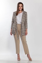 Жакет укороченный прямого кроя выполнен из текстильного полотна черного цвета. Характеристики: прямой крой, подкладка, воротник с остроугольным лацканом, подплечики, застежка на петли, пуговицы, втачной рукав, три пуговицы на манжете. Длина рукава 61см, длина изделия 39см.