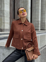 Жакет в благородном цвете эспрессо создан для элегантного и женственного образа. Классический воротник повторяет V-образную форму, делает акцент и визуально удлиняет шею, а приталенный крой подчёркивает линии силуэта. Декоративные золотистые пуговицы делают образ более рокошным и праздничным.