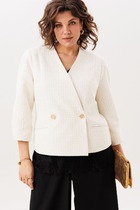 Жакет оверсайз силуэта с дизайнерским рукавом, сшитым из ярусов шифона и поплина, котрые придают легкий флёр воздушности. Жакет однобортный, обработан подкладкой, рукава втачные. Жакет, который легко станет акцентом для базового гардероба и для праздничных образов.