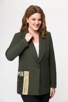 Жакет женский из текстильной ткани, удлиненный, полуприлегающего силуэта с центральной бортовой застежкой на пуговицы до линии перегиба лацкана. Спереди рельефные швы от плечевого шва, отрезной бочок и карман с клапаном. Спинка с рельефами от плечевого шва. Рукав втачной, двухшовный. Воротник пиджачного типа. Жакет на подкладке, длина по спинке 67 см, длина рукава 62 см. К жакету рекомендуем брюки 596-арт. 2 79 22