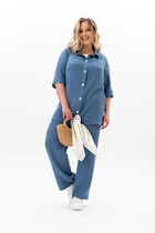 Жакет женский удлиненный, полуприлегающего силуэта с центральной бортовой застежкой на пуговицы до линии перегиба лацкана. Спереди рельефные швы от плечевого шва, отрезной бочок и карман с клапаном. Спинка с рельефами от плечевого шва. Рукав втачной, двухшовный, 3/4, с небольшим разрезом в локтевом шве. Воротник пиджачного типа. Перед жакета на подкладке. Длина рукава 50, длина по спинке 68 см.