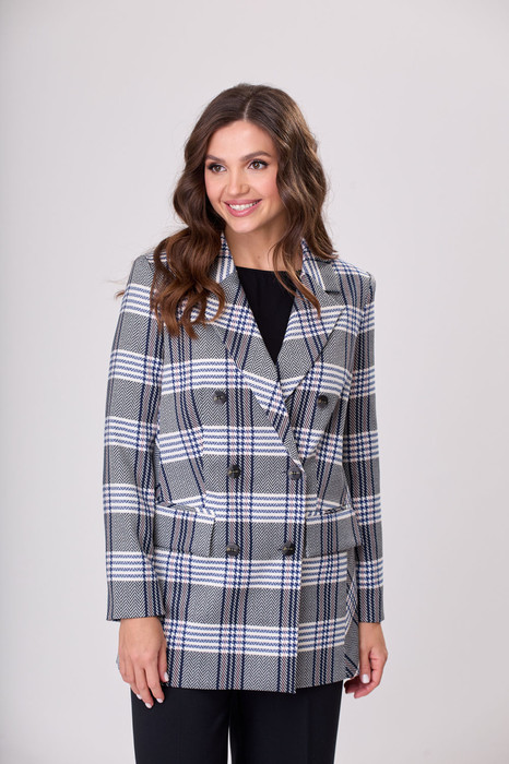 Жакет БелЭльСтиль 848 сине-бело-черная клетка