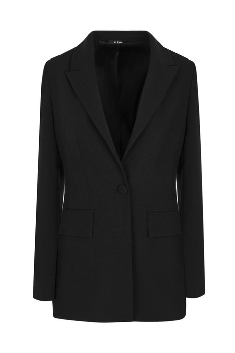 Жакет женский, однобортный, полуприлегающего силуэта, на подкладке. Застежка на одну петлю и пуговицу. На переде карманы в рамку с клапаном. Рукава втачные, в нижней части локтевого шва отлетная шлица с 4 пуговицами и непрорезными петлями. Воротник и лацкана отложные.
