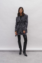 Жакет полуприлегающего силуэта, на подкладке; воротник пиджачного типа; рукава втачные; по переду функциональные прорезные карманы; застежка двубортная на петли и пуговицы.