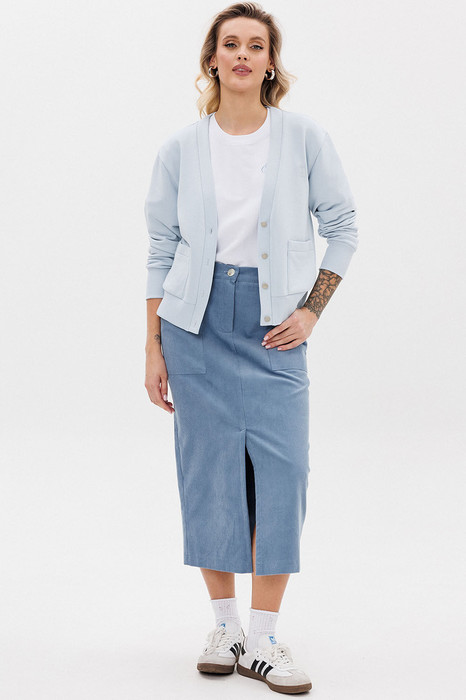 Длина кардигана по среднему шву спинки: 55-59 см.