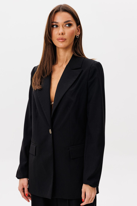 Идеальное сочетание строгости и утонченности — удлиненный жакет с воротником ласточкой станет ключевым элементом вашего гардероба. Приталенный силуэт мягко подчеркивает талию, создавая женственный и элегантный образ, а удлиненный крой визуально вытягивает фигуру, добавляя динамики и современности. Однобортная застежка с акцентными пуговицами придает модели лаконичность, а воротник-ласточка, плавно переходящий в лацканы, добавляет нотку классической роскоши.